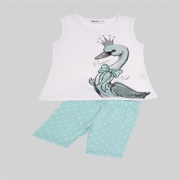 Λευκό μπλουζάκι με κύκνο και βεραμάν κολάν με αστεράκια. Από 100% βαμβάκι.
