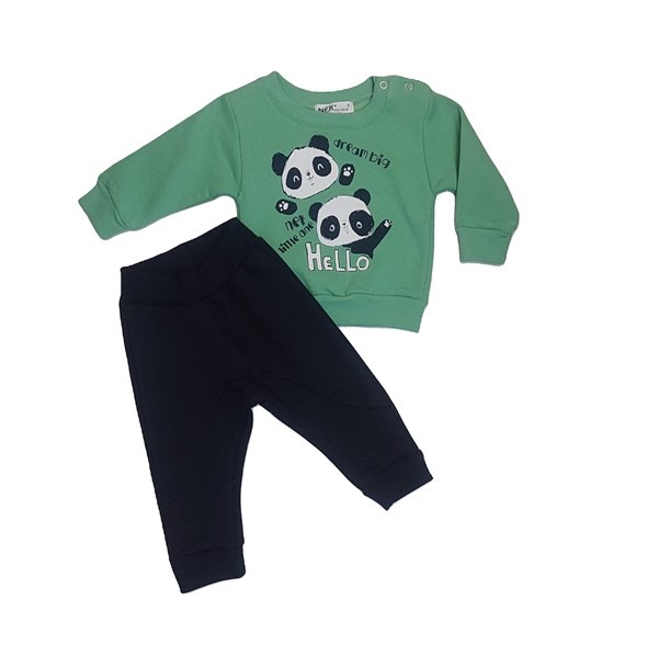 Πράσινο φούτερ με panda και μαύρο παντελόνι φόρμας τύπου βράκα. Από 80% βαμβάκι και 20% πολυέστερ. Εταιρεία nek.