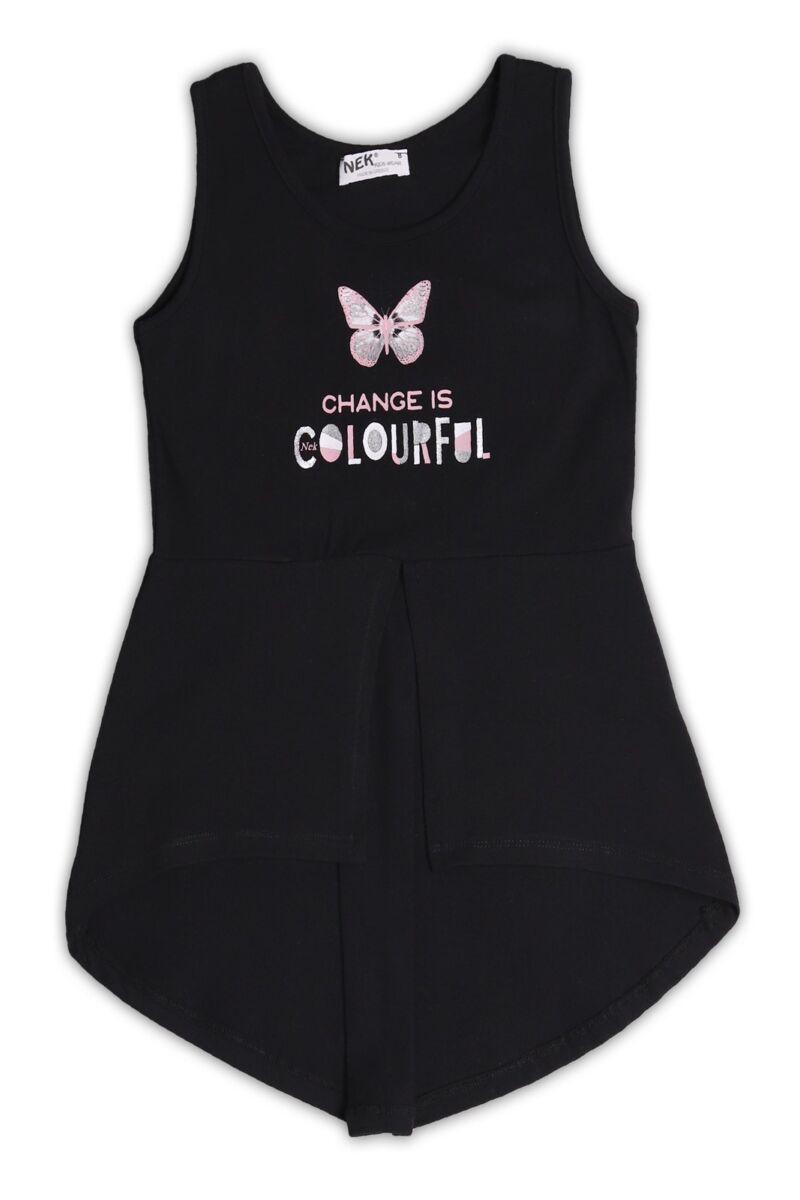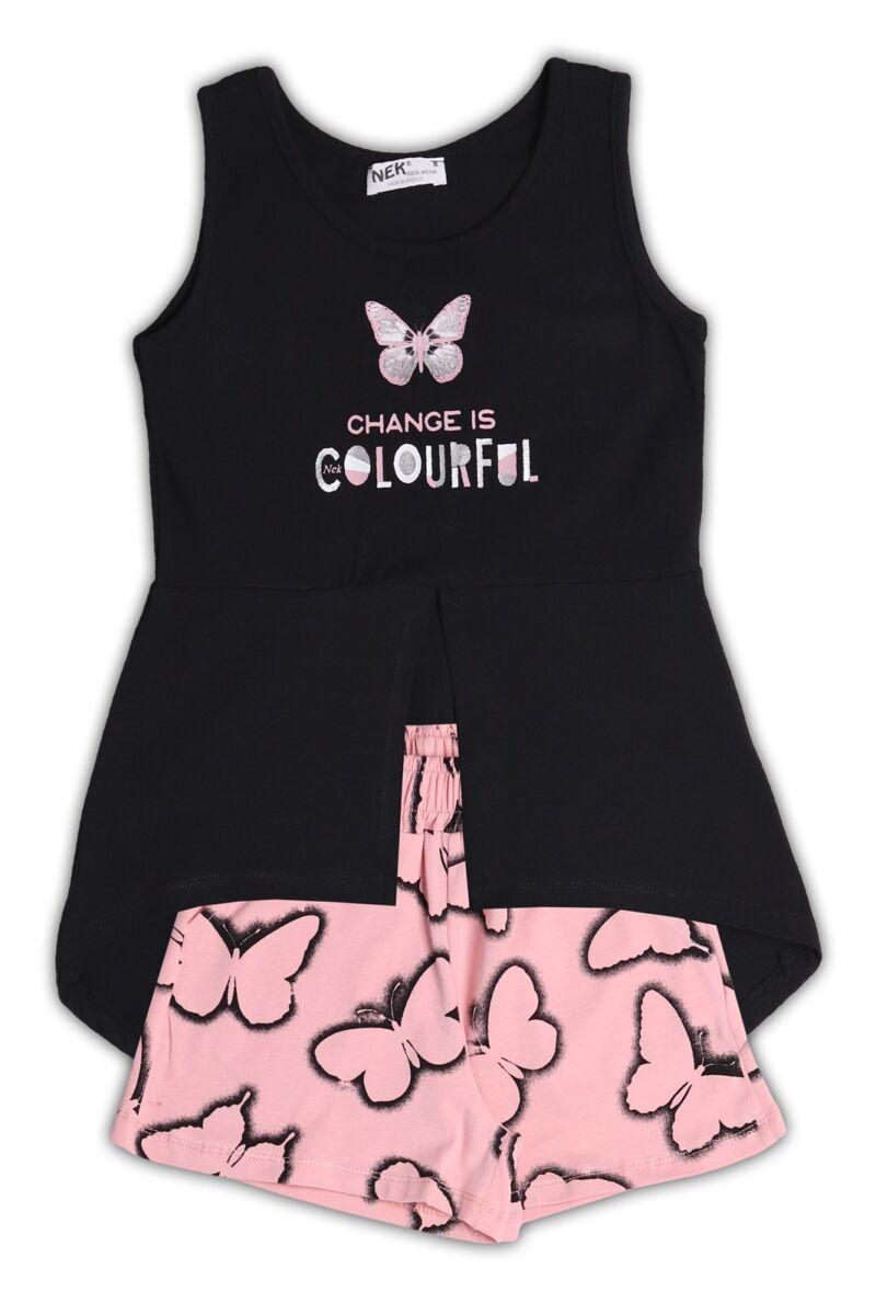 Σετ για κορίτσι nek colourful μαύρο μπλουζάκι με άνοιγμα στην πλάτη και ροζ σορτσάκι με πεταλούδες. Από 100% βαμβάκι.